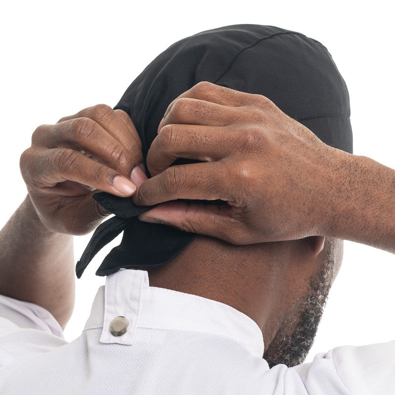 Ce bandana de cuisine mixte est proposé en taille unique, avec une fermeture velcro réglable qui permet de l’ajuster facilement à toutes les têtes. Léger et agréable à porter, il reste en place même lors des services intenses.
