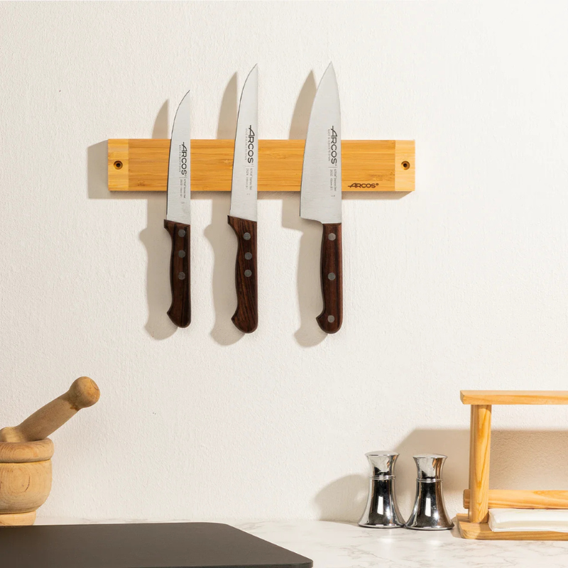 Ces supports muraux, barre magnétique ou porte couteaux, nous donnent un endroit sûr pour placer vos ustensiles de cuisine grâce à la puissance de l'aimant intégré. Permettant d'avoir les couteaux à portée de main, ils empêchent de perdre le tranchant puisqu'ils ne seront pas en contact direct avec les autres couteaux de chef.