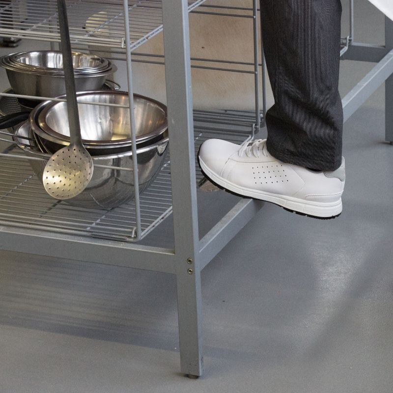 Ces baskets de sécurité conviennent-elles à un usage en cuisine ?Oui, elles sont idéales pour les professionnels de la restauration grâce à leur semelle antidérapante et leur résistance aux liquides.