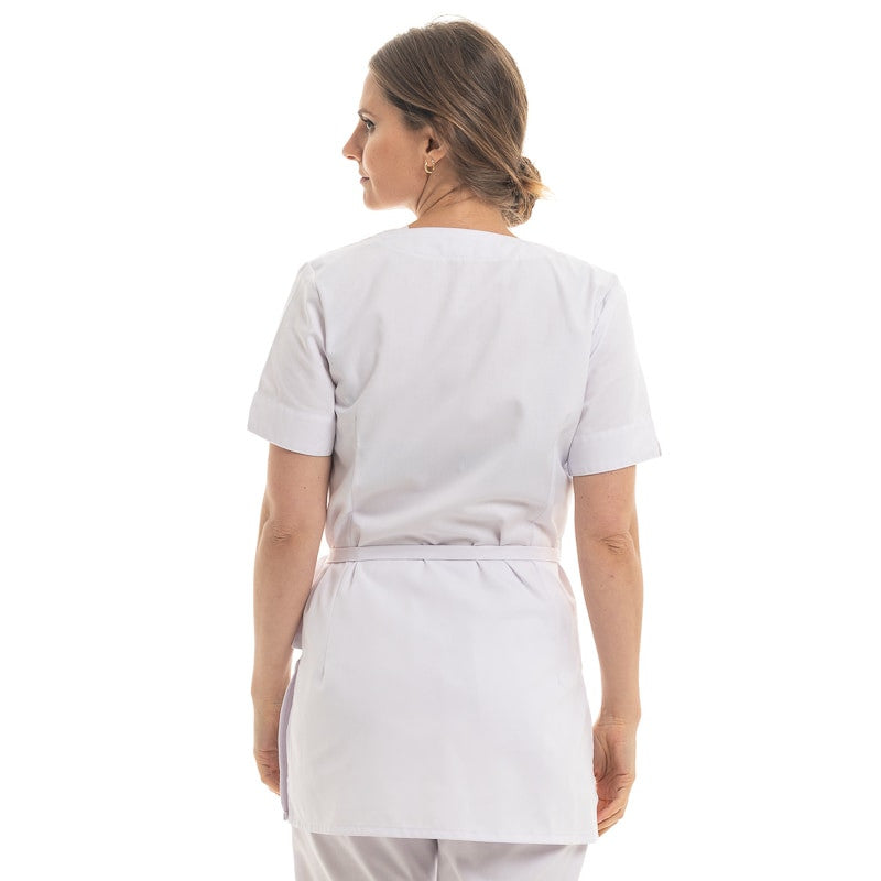 - Porter cette blouse esthéticienne femme blanche pour les soins en institut, spa ou activités de bien-être