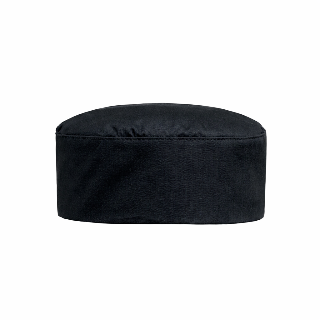 Ce calot de cuisine taille unique s’ajuste facilement grâce à une bande velcro réglable située à l’arrière, s’adaptant parfaitement à tous les tours de tête. Son design sobre et élégant en noir s’accorde avec toutes les tenues de cuisine, qu’elles soient colorées ou classiques.