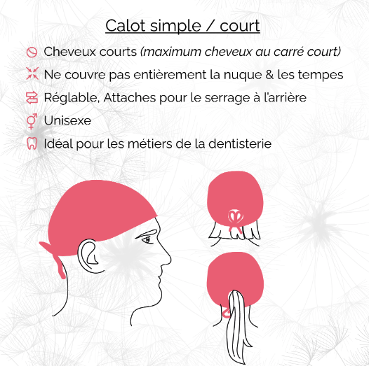 Ces calots médicaux courts sont dotés d'une attache réglable pour vous permettre de l'ajuster parfaitement à votre tête. Entièrement conçus et fabriqués en France, ils sont créés par une entreprise au savoir-faire artisanal qui tient à la qualité irréprochable de ses produits.