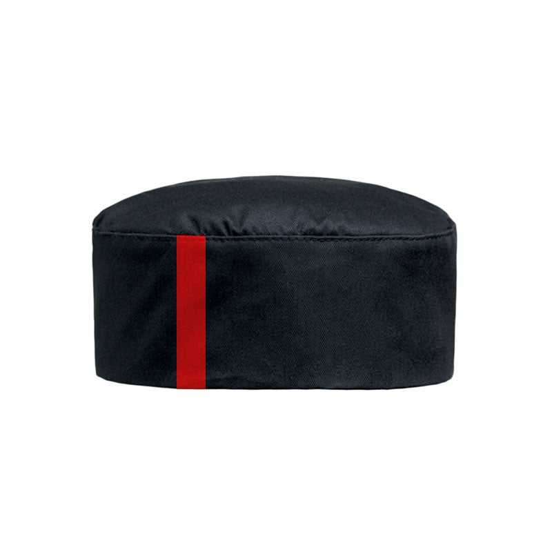 Caractéristiques du calot de cuisine noir à liseré rouge par Manelli