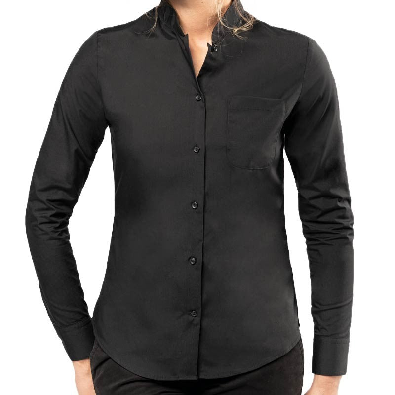 Chemisier de Service Femme Col Mao Noir Manches Longues - TOPTEX