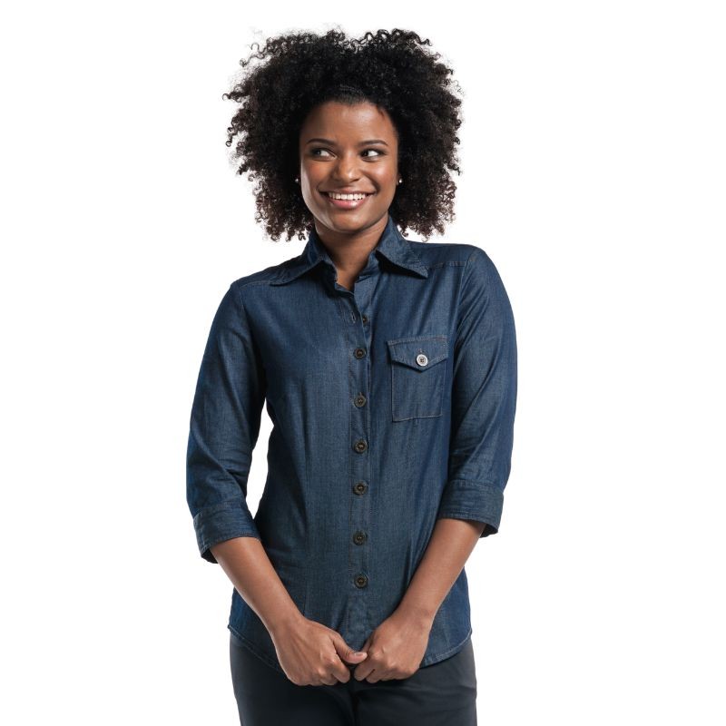 Chemise de service manches 3/4, stretch denim