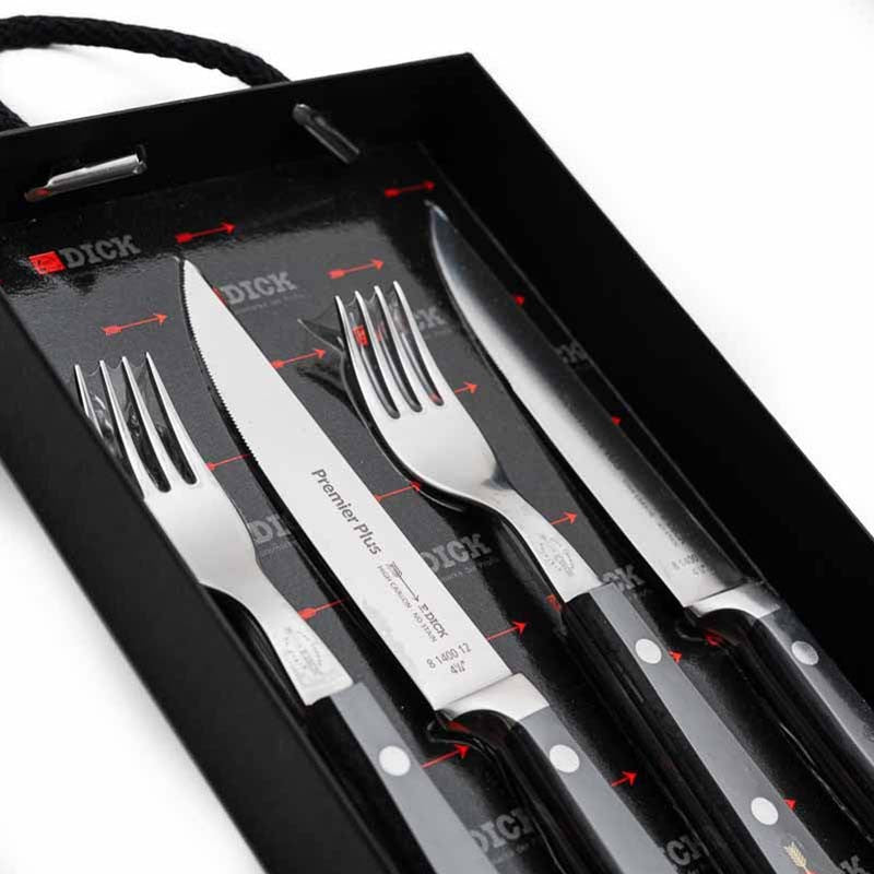 Ce coffret de 4 couverts à steak Premier Plus - DICK est l'accessoire parfait pour savourer vos viandes dans les meilleures conditions.