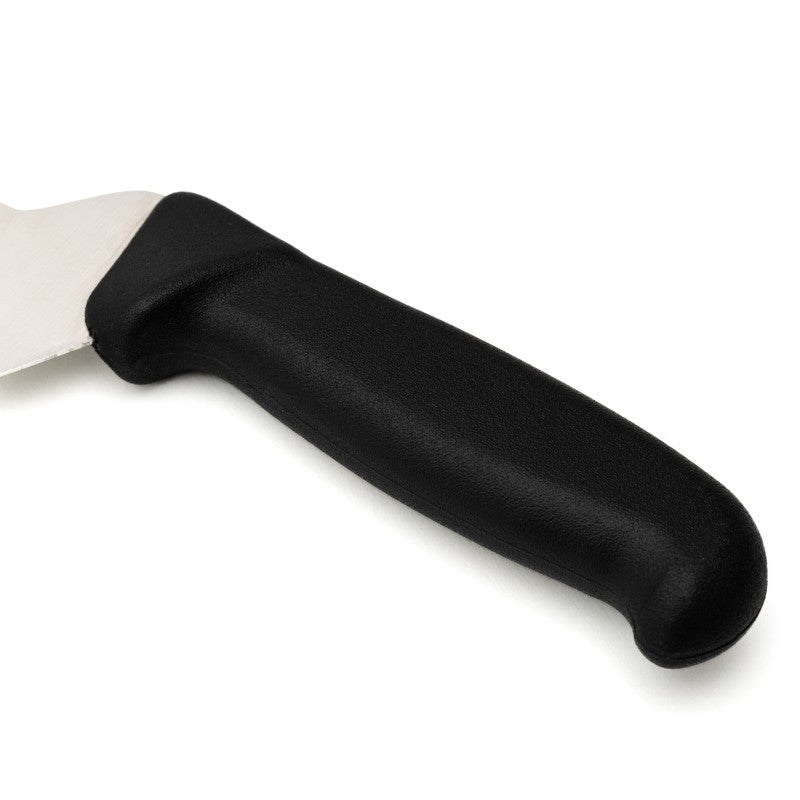 Ce couteau à fromage professionnel possède une poignée surélevée afin de donner plus d'espace pour la main pendant la découpe. Vous minimiserez vos efforts ! Celui-ci est doté d'une lame de 21 cm en acier inoxydable et d'un manche en ABS noir, garantissant un confort lors de l'utilisation. Pour entretenir votre couteau à fromage nous vous conseillons de le nettoyer à l'aide d'un chiffon humide.