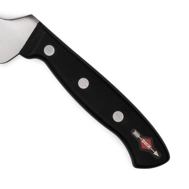 Le couteau à fromage DICK est doté d'un manche noir en plastique robuste et ergonomique, renforcé par 3 rivets pour une solidité optimale.