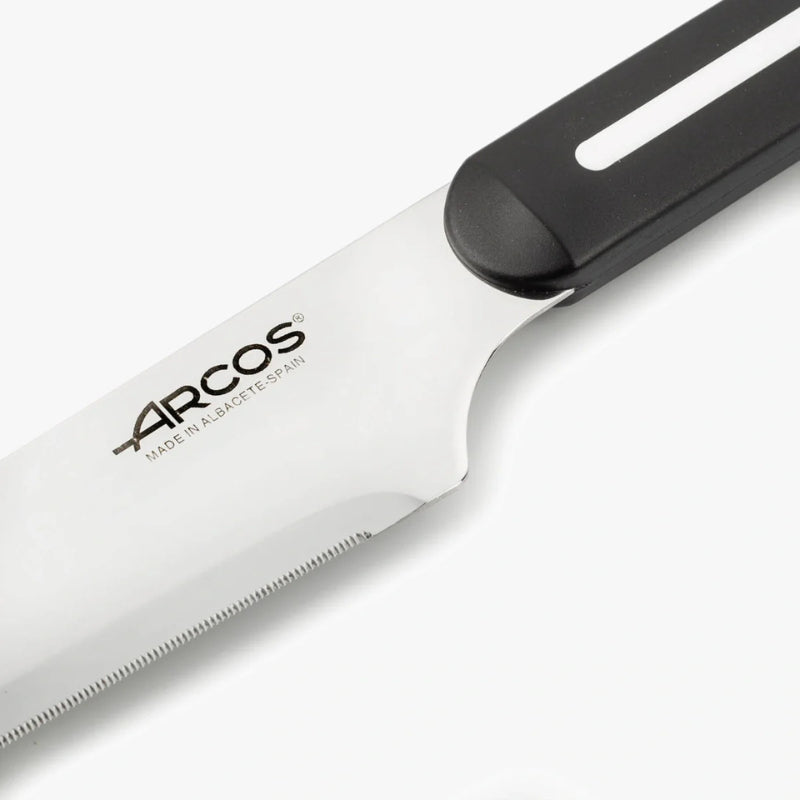 Le couteau office multiusage Línea 140 mm d’Arcos est un outil essentiel pour toutes les cuisines, qu’elles soient professionnelles ou domestiques. Sa lame microdentée de 140 mm en acier inoxydable NITRUM® assure une précision de coupe exceptionnelle et une grande durabilité. Conçu pour trancher facilement une large gamme d’aliments, il est idéal pour la découpe des légumes, viandes et pains sans effort.