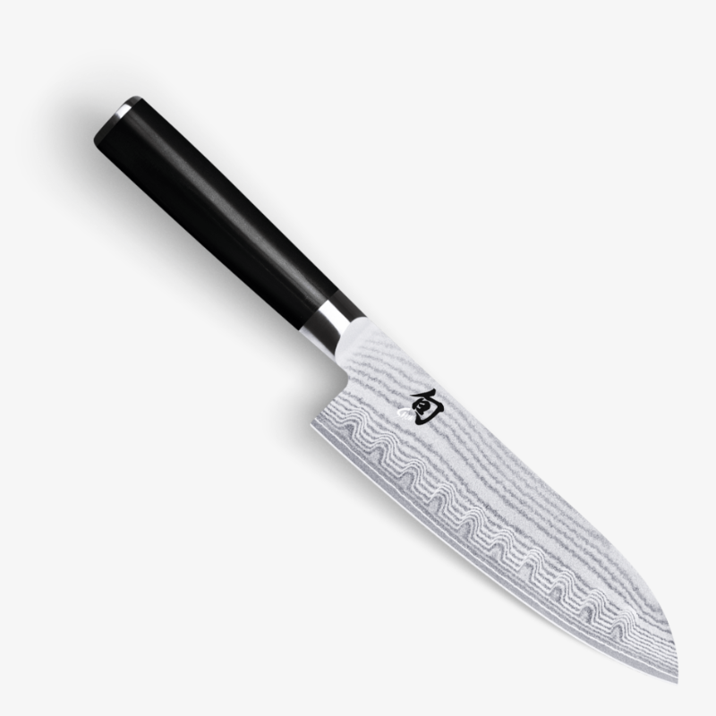 Le couteau Santoku est le couteau le plus populaire du Japon, car il est une alternative plus conviviale au traditionnel coupe-légumes. Sa lame est généralement un peu courbée et parfois celle-ci est alvéolée afin de faciliter la découpe et pour détacher les aliments de la paroi.
