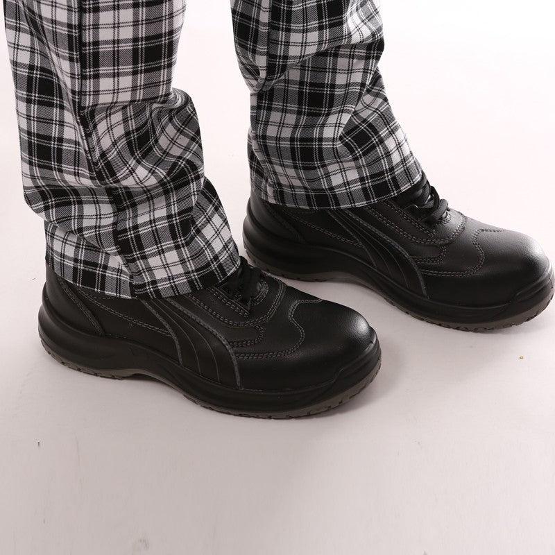 La marque Egochef continue de proposer des modèles de vêtement de cuisine originaux pour vous permettre de vous démarquer. Munissez-vous de ce pantalon de cuisine noire à carreaux pour changer des habituelles tenues intégralement blanches que nous avons l'habitude de voir dans les cuisines. Profitez de ce pantalon de cuisine à carreaux qui se porte très bien avec un haut noir ou un haut blanc. Son atout principal : le confort, grâce à sa ceinture élastique, vous serez à votre aise tout au long de la journée.