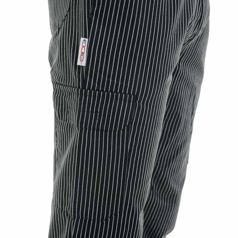 Pantalon de cuisine multipoches noir à fines rayures de Egochef