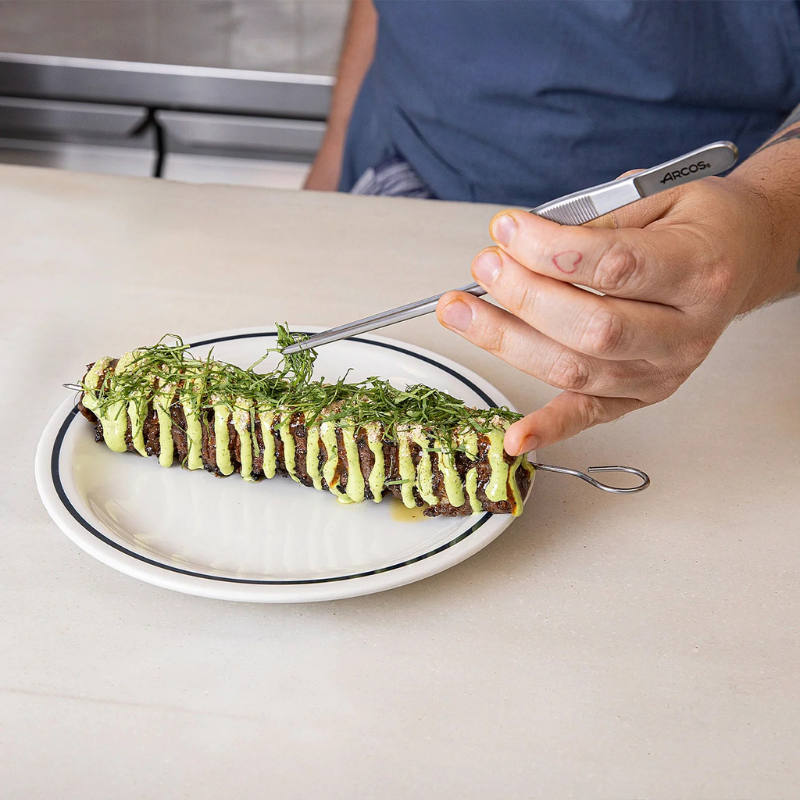 La célèbre marque espagnole Arcos, est réputée pour fabriquer des articles culinaires et des ustensiles de cuisine de haute qualité. La pince à dresser aussi appelée la pince de précision sert, comme son nom l'indique, à dresser vos assiettes en toute délicatesse. Fine et rigide la pince garantie une prise en main très agréable grâce à sa forme incurvée.