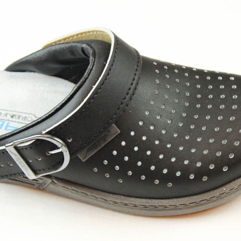 Les sabots médicaux noir en cuir proposés par la marque ABEBA sont extrêmement résistants. Ils proposent un dessus perforé pour une aération et un confort optimal. Ces sabots sont résistants à l'essence, et aux huiles et aux graisses animales. Réglables par boucle, ils s'adaptent à la forme de votre pied pour une aisance maximale. Leurs semelles top confort sont anti-dérapantes.