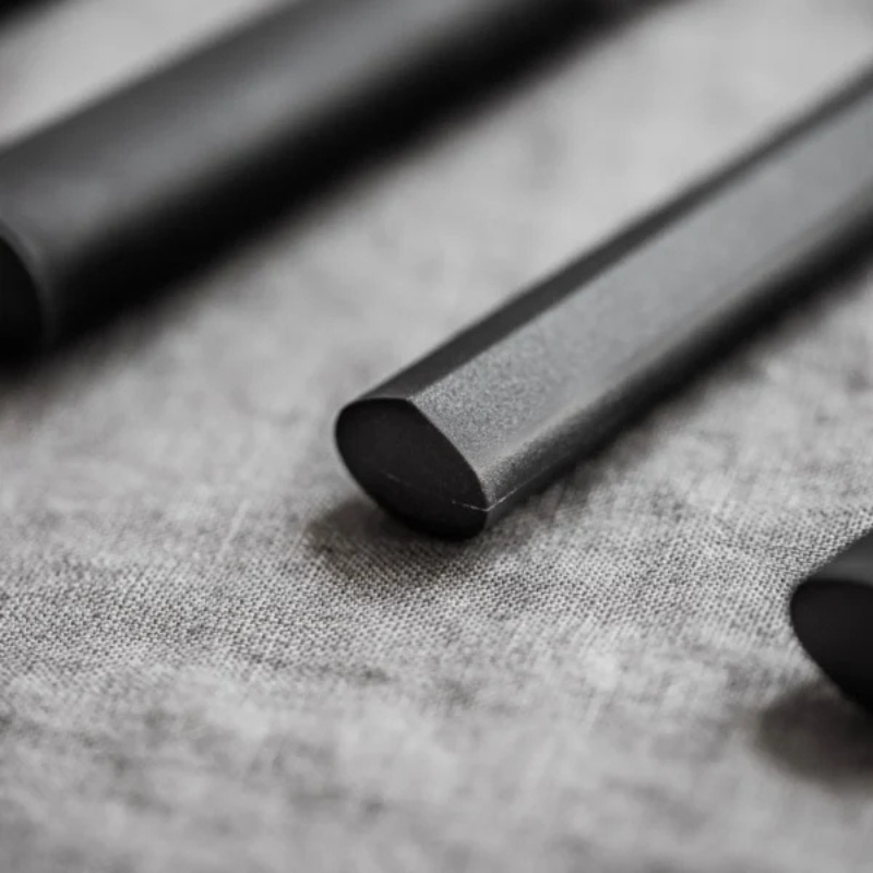 Les manches des couteaux, fabriqués en polypropylène et poudre de bambou, offrent une prise en main ergonomique et confortable grâce à leur forme en D traditionnelle. Cette conception garantit un contrôle optimal et réduit la fatigue, même après de longues sessions en cuisine. Les lames, quant à elles, sont forgées dans un alliage d’acier inoxydable molybdène-vanadium enrichi à 0,8 % de carbone, combinant souplesse et résistance. Cette composition assure une découpe propre, une solidité accrue et une excellente tenue du fil.