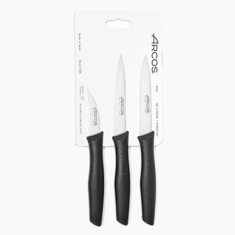 Le set de 3 couteaux office noir série Nova - Arcos est parfait pour les préparations culinaires quotidiennes