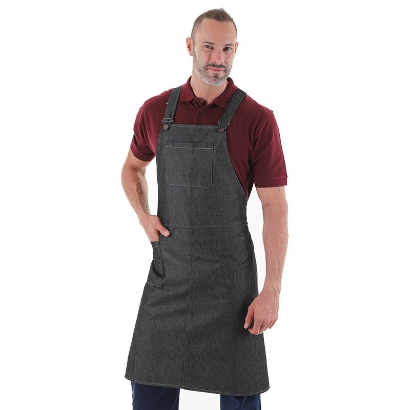 Tablier à Bavette Urban Croisé Black Denim MANELLI