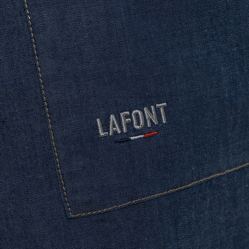 Plus qu'un vêtement de protection, ce tablier à bavette denim, ses liserés en simili cuir et sa broderie LAFONT aux couleurs du drapeau tricolore, offre un véritable style ! N'hésitez plus, adoptez-le !