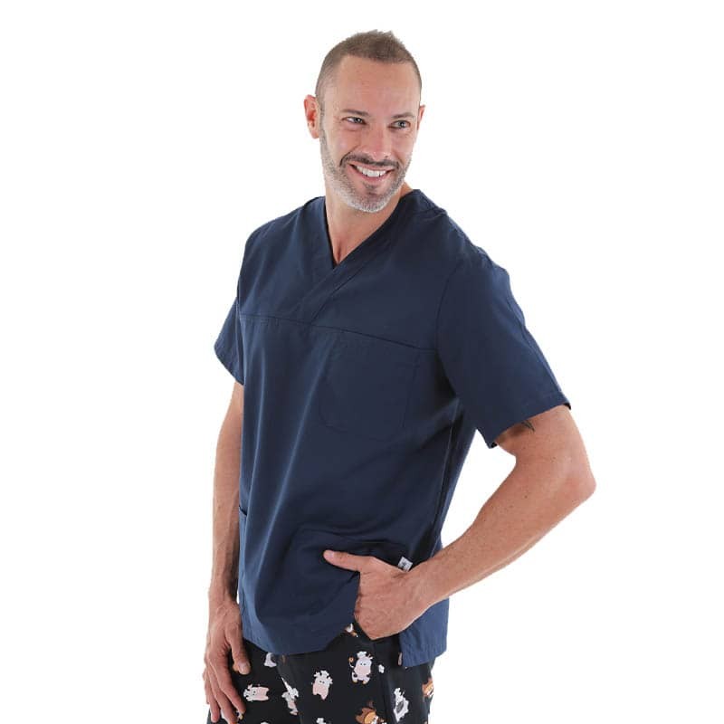 La couleur bleu marine apporte une touche d’élégance et de modernité, tout en restant sobre et professionnelle. Elle constitue une alternative chic au blanc classique, idéale pour diversifier votre tenue médicale.
