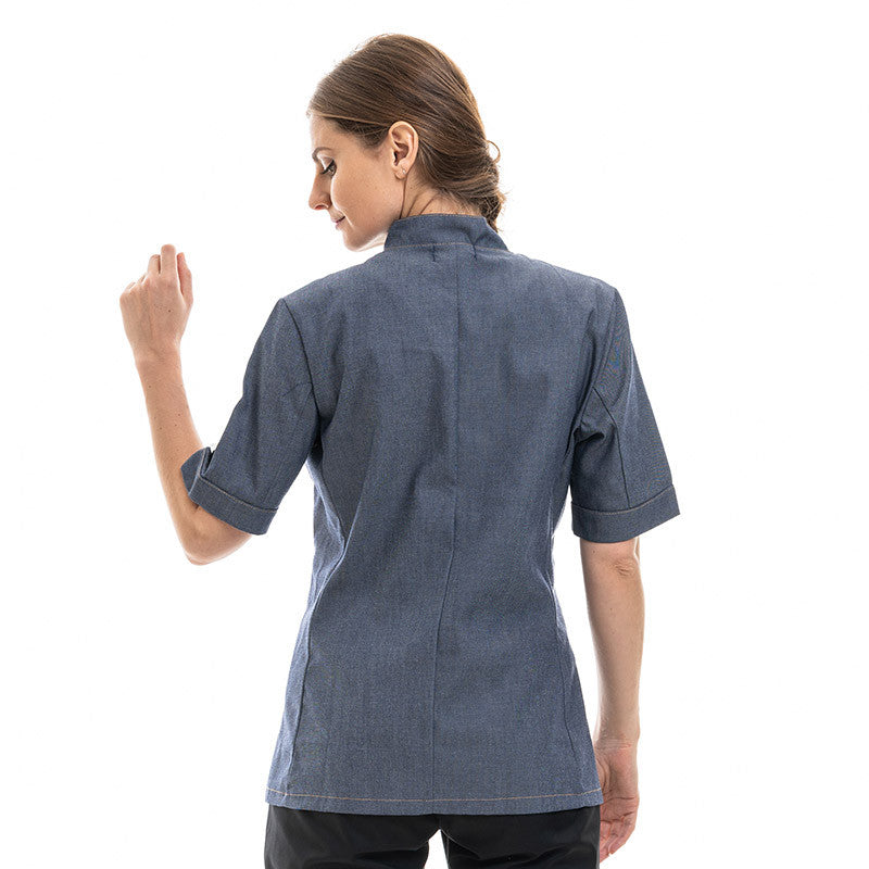 La veste Flavie en version manches courtes est idéale pour la boulangerie. Grâce à ses manches courtes, vous aurez une aisance de travail idéal pour fabriquer vos différentes préparations. Le col officier donne un air décontracté à la veste. Sa couleur donne un style vintage et rétro pour votre magasin de boulangerie. Les aérations sous les emmanchures sont pratiques et permettent de ne pas transpirer.