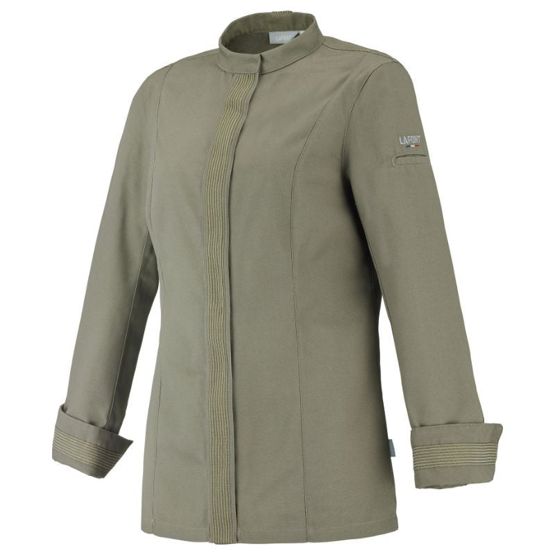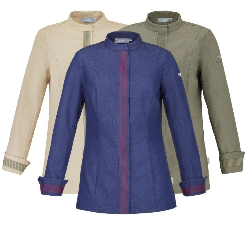 Optez pour la veste de cuisine Fava manches longues Lafont, une pièce élégante et performante, parfaite pour les cuisinières exigeantes !