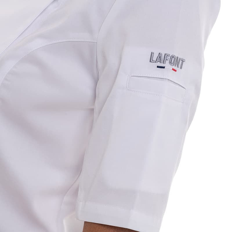 Alliant style et confort, la veste de cuisine femme Marjoram manches courtes de Lafont est idéale pour celles qui évoluent en cuisine, en pâtisserie ou en restauration.