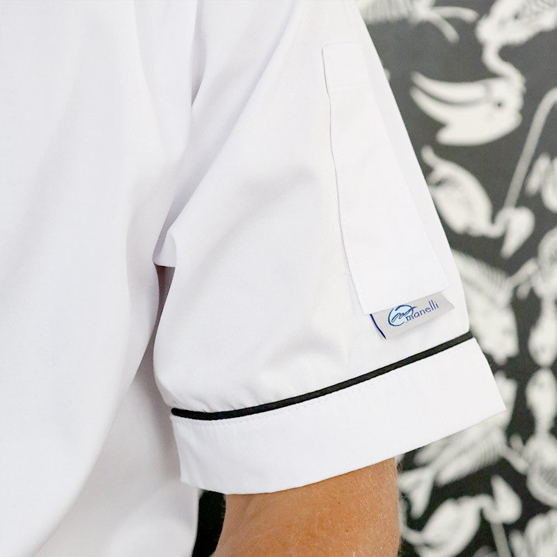 Veste de boulanger Blanche Respirante liseré noir ou gris - MANELLI - Boutons pressions cachés