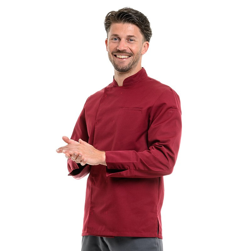 Manelli a conçu une veste de cuisine de couleur bordeaux pour convenir à toutes les morphologies et tous les goûts. Sa couleur unique ne se délave pas grâce à une expertise poussée.