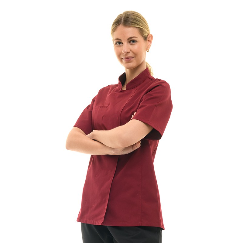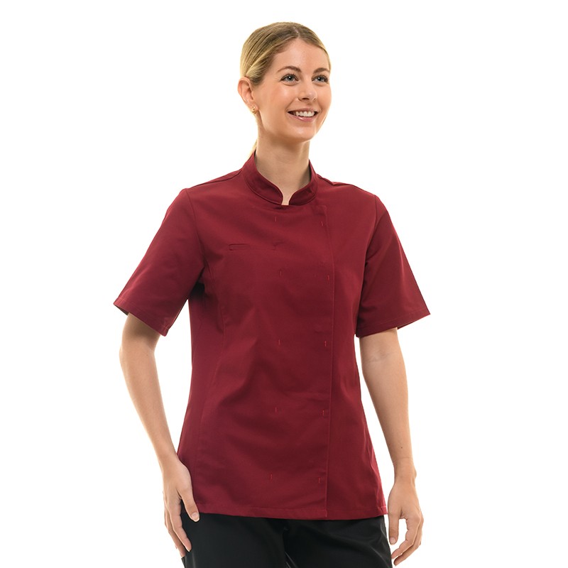 Veste de Cuisine Femme Californie Manches Courtes Bordeaux