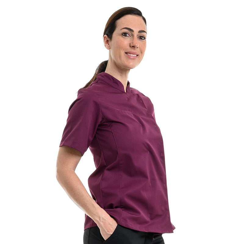 Veste de Cuisine Femme Californie Manches Courtes Prune, coupe ajustée - MANELLI