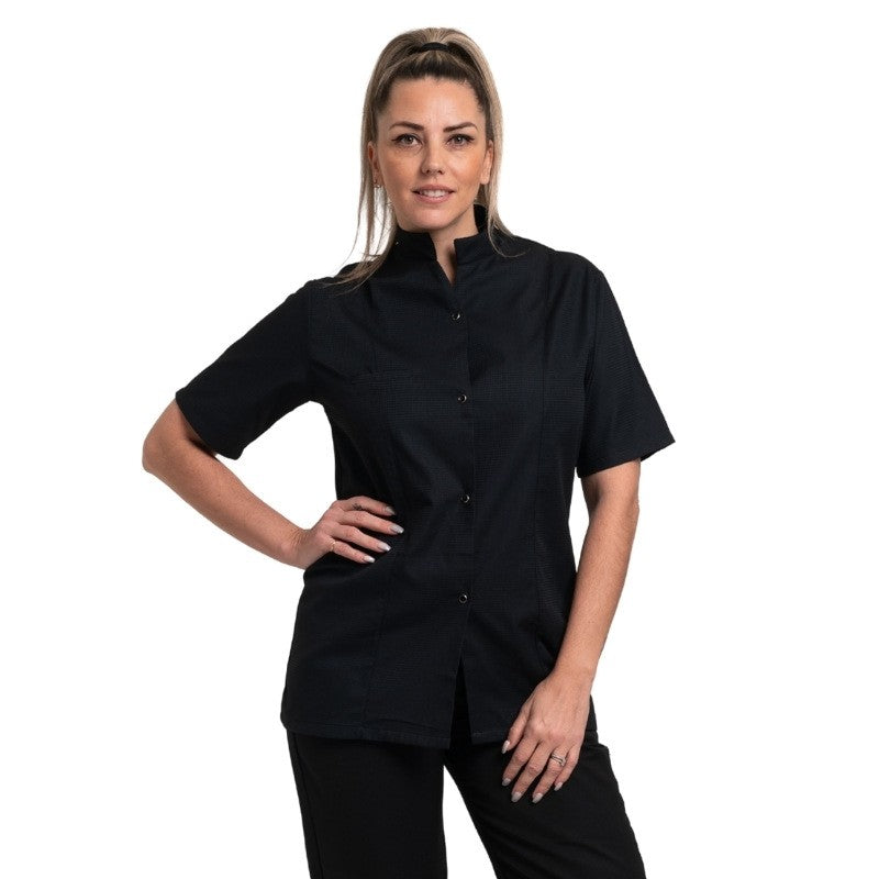 Ce modèle est disponible en noir, une couleur sobre et intemporelle, parfaite pour un uniforme élégant et professionnel.