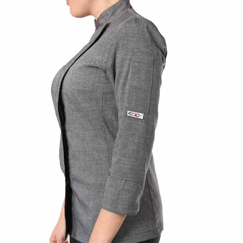 La veste de cuisine femme Ego Chef grise chiné se distingue par son coloris sobre, élégant et atypique. Elle vous ravira mesdames, que vous soyez amatrices ou professionnelles. Sa coupe slimfit s’adapte à votre corps et favorise le côté féminin de la veste. Ses manches retroussables favorisent un travail précis et de qualité.