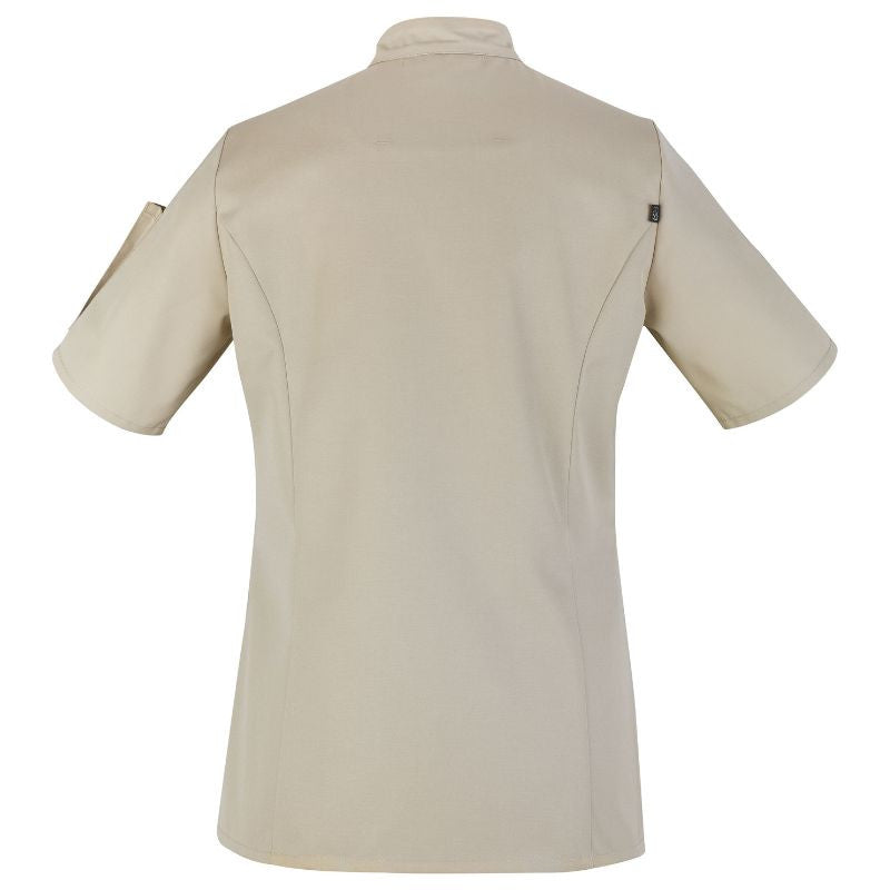 Sa structure courte et ajustée minimise les accrochages et offre une excellente aisance de mouvement, même dans les cuisines étroites ou les espaces de production alimentaire. Le beige permet de refléter une image soignée, tout en mettant en valeur l’élégance naturelle du vêtement.