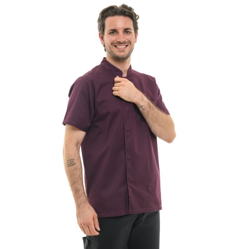 Veste de Cuisine Homme Texas Manches Courtes Prune, coupe ajustée et tendance - MANELLI