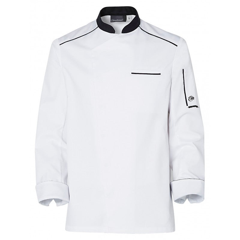 Veste de Cuisine Homme Manches Longues Néospirit Blanche Liseré Noir - MOLINEL