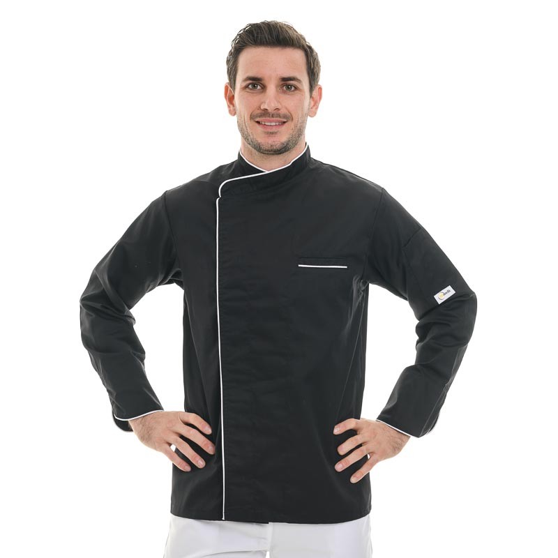 Veste de cuisine noire avec long liseré blanc modèle Harry Manelli