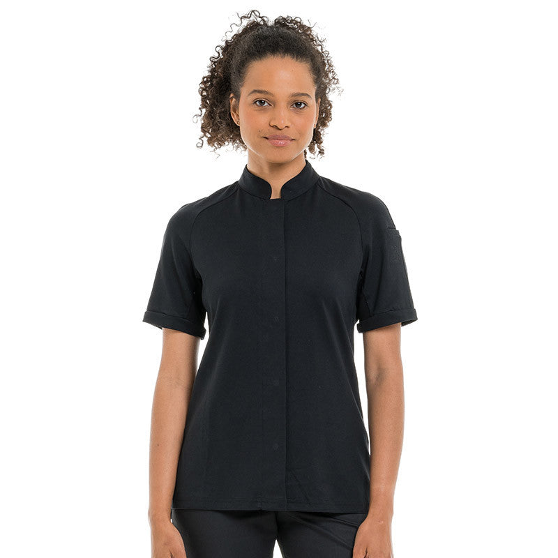 Découvrez la veste de cuisine professionnelle noire manche courte de la gamme gloria de Robur. Une veste très pratique pour vos déplacements en cuisine, grâce à sa légèreté, vous bénéficiez d'une liberté de mouvement très souple. Idéal pour mener vos opérations derrière les fourneaux avec succès. Son col mao donne un style décontractée et vous fait refléter une image positive auprès de vos collaborateurs. Le tout, facilement lavable en machine à laver à 60°.