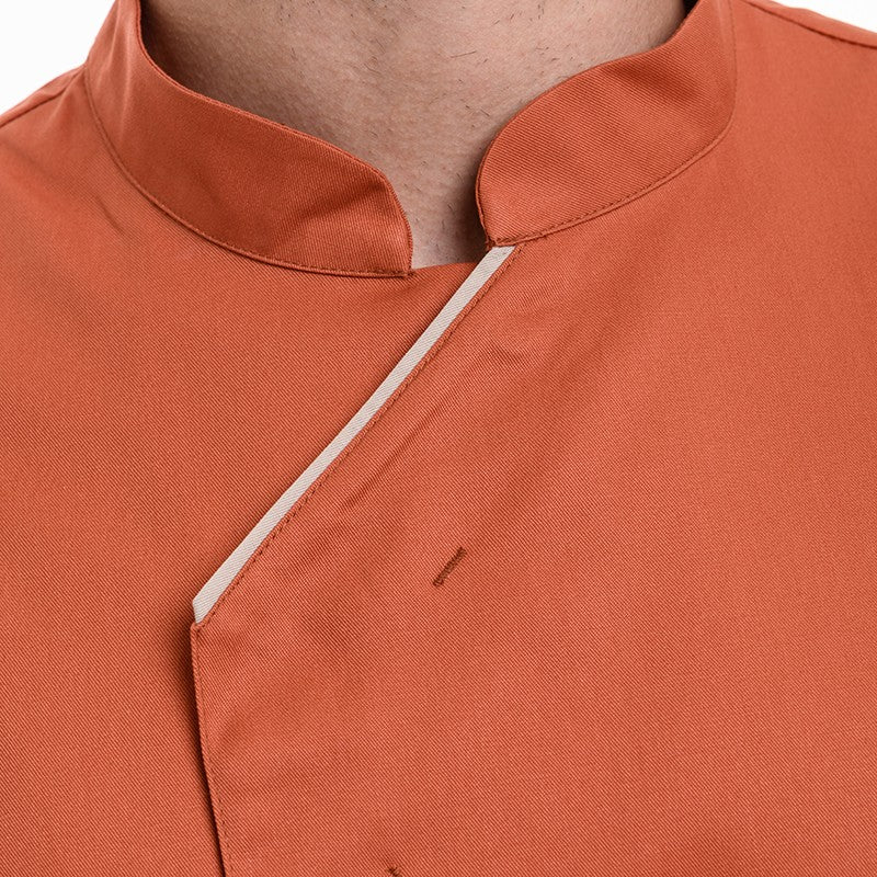 La veste de cuisine à la couleur originale pour les professionnels de la cuisine ! Cette veste de cuisine à manches courtes convient tout à fait pour les métiers de bouche. Accordez cette veste de cuisine coloris Terracotta avec un large choix de pantalons de cuisine coloris noir !